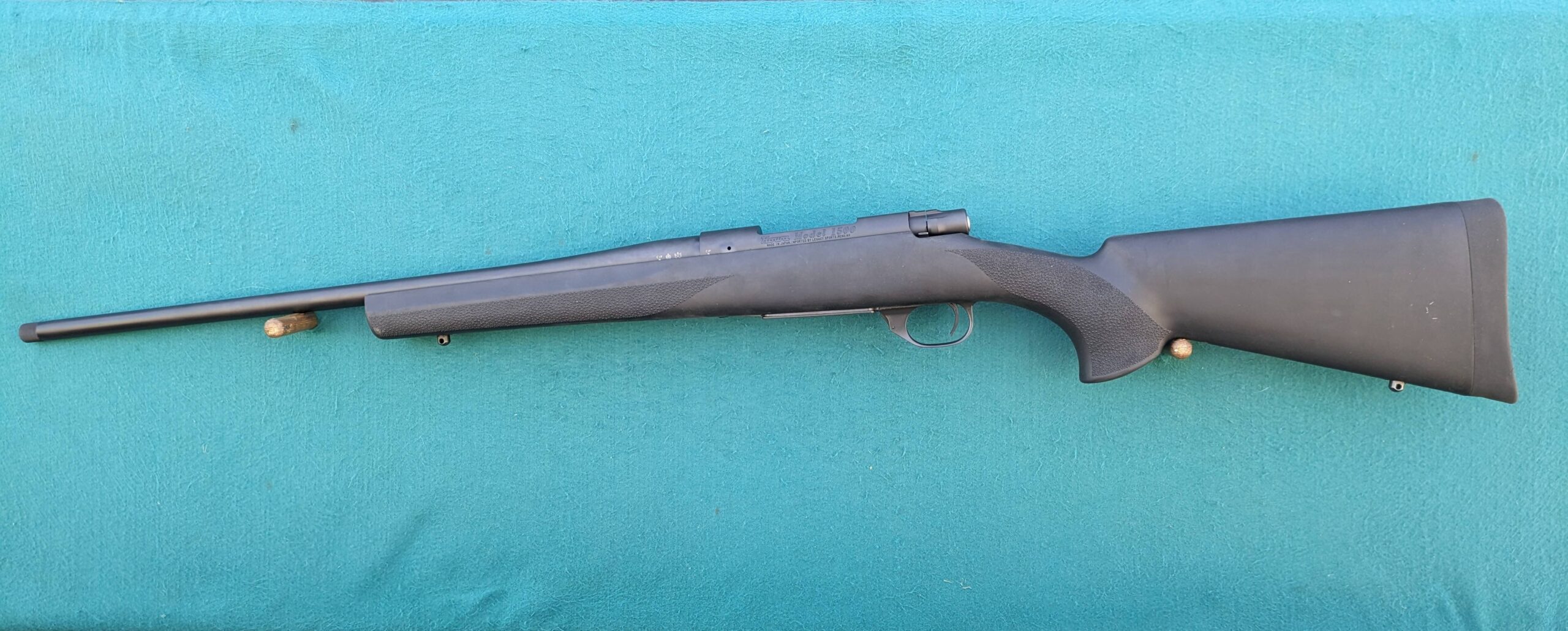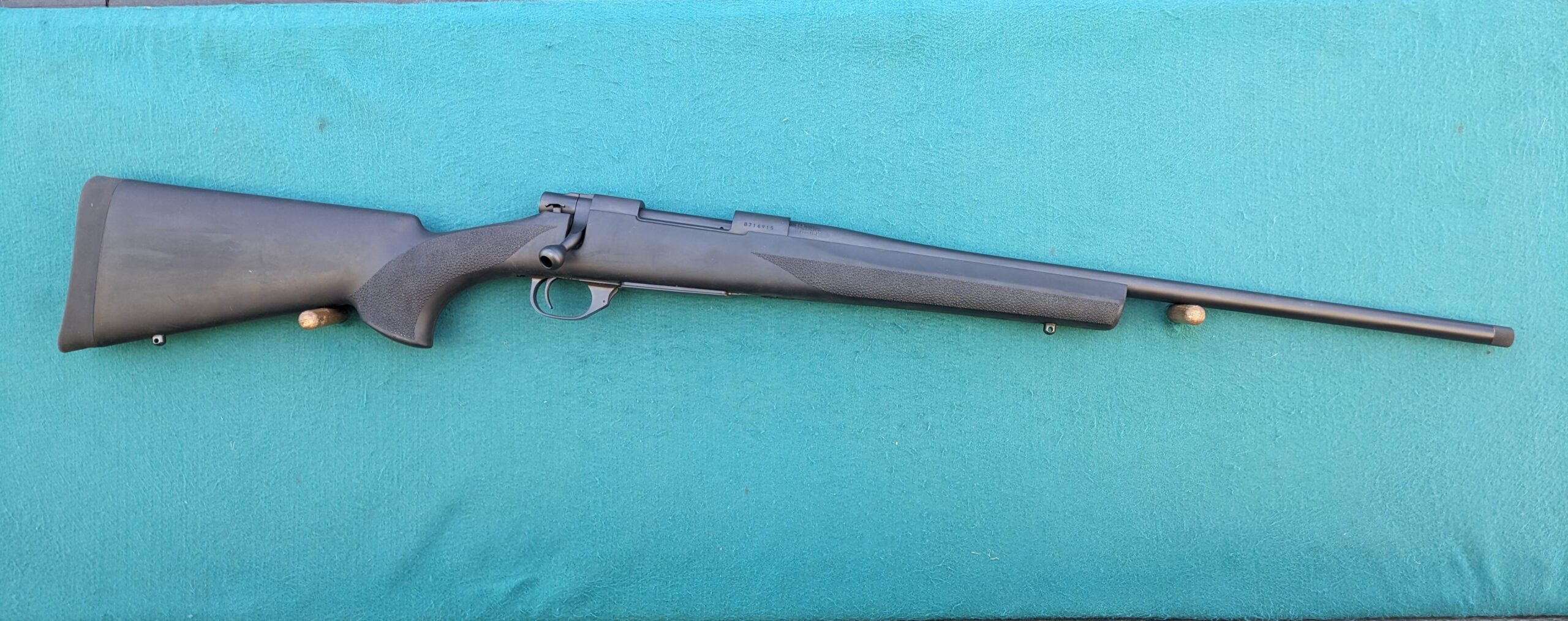 Model 1500 with 22″ sporter blued barrel with no 2 profile; Hogue SureGrip sporter weight stock.